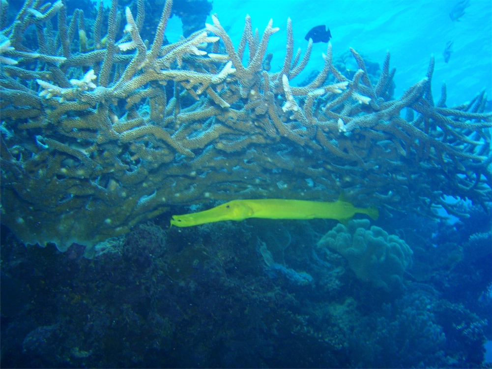 this was a big fish, and i was about 3 meters from it but still you can see the light reflecting from the over hang coral.