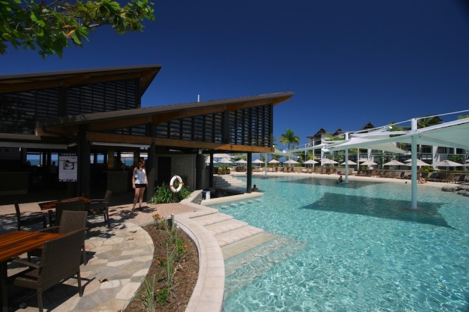 Bar in the water, you can just see the stools in the water,… soooo coool. …
